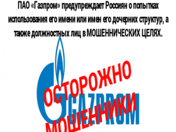 ПАО «Газпром» предупреждает вас о попытках использования его имени или имен его дочерних структур, а также должностных лиц в мошеннических целях.