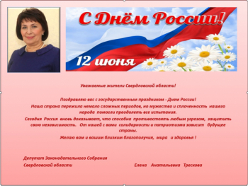 Поздравления Депутата Законодательного Собрания Свердловской области Елены Анатольевны Тресковой