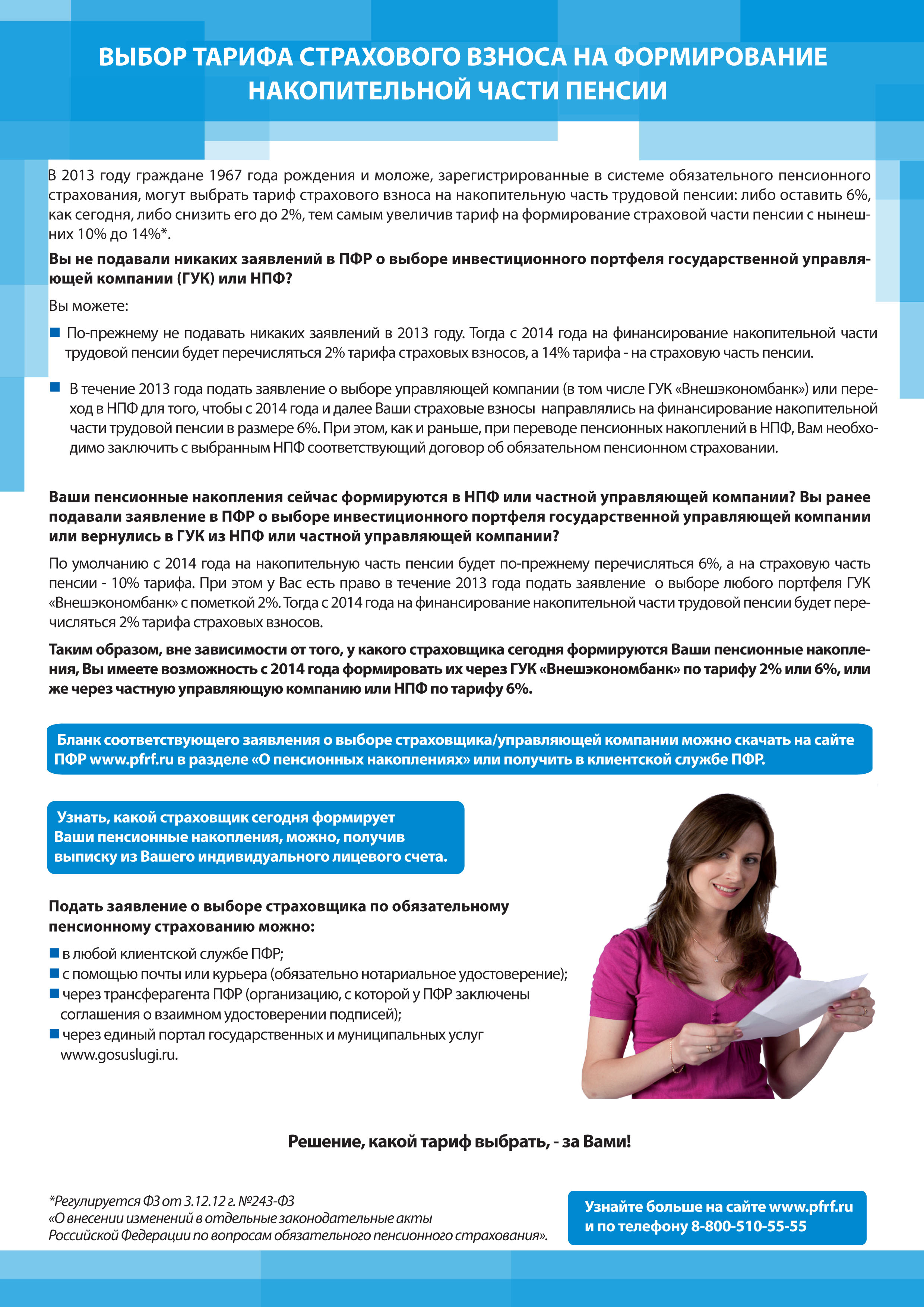 3 апреля 2013 Пенсионный Фонд информирует Администрация Тугулымского городского округа от 03.04.2013Выбор тарифа страхового взноса на формирование накопительной части пенсии (1 Мб)